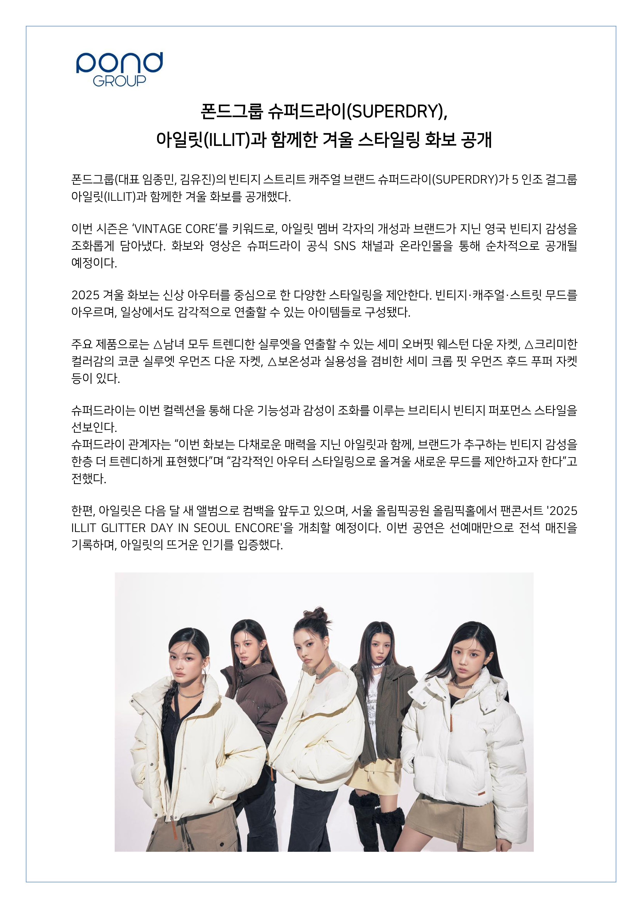 [폰드그룹] 슈퍼드라이(SUPERDRY), 아일릿(ILLIT)과 함께한 겨울 스타일링 화보 공개