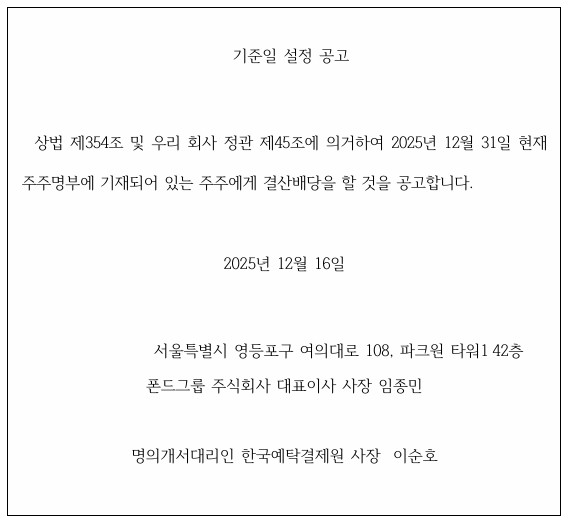 [폰드그룹] 무상증자 신주배정 기준일 설정 공고