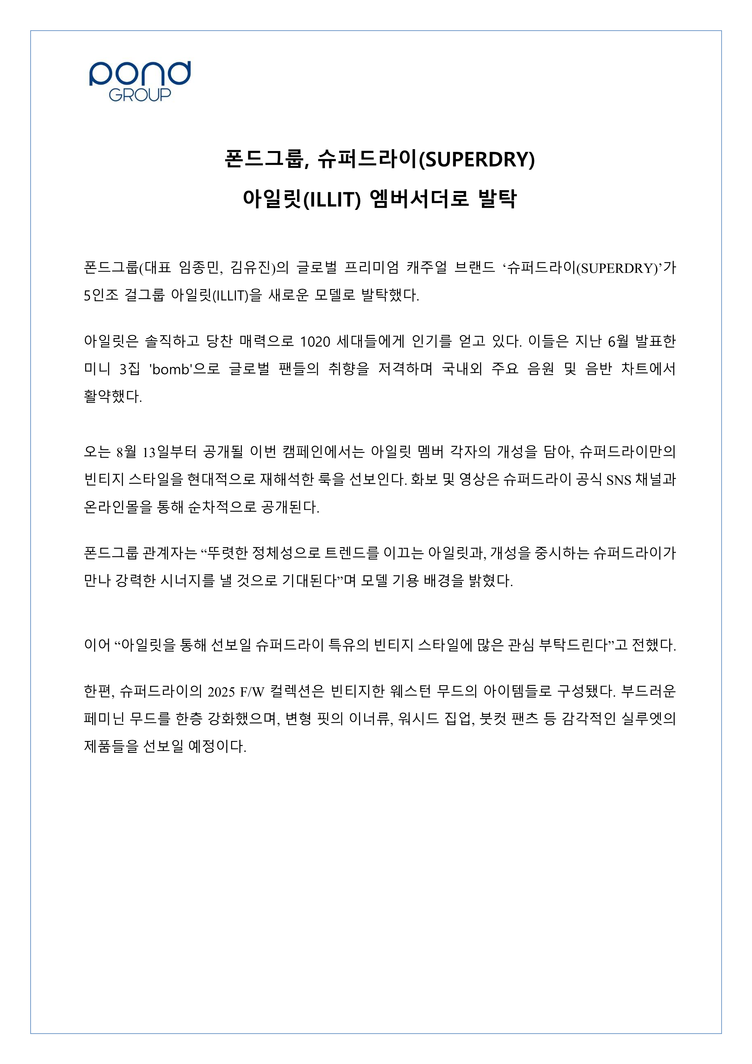 [폰드그룹] 슈퍼드라이(SUPERDRY) 아일릿(ILLIT) 엠버서더로 발탁