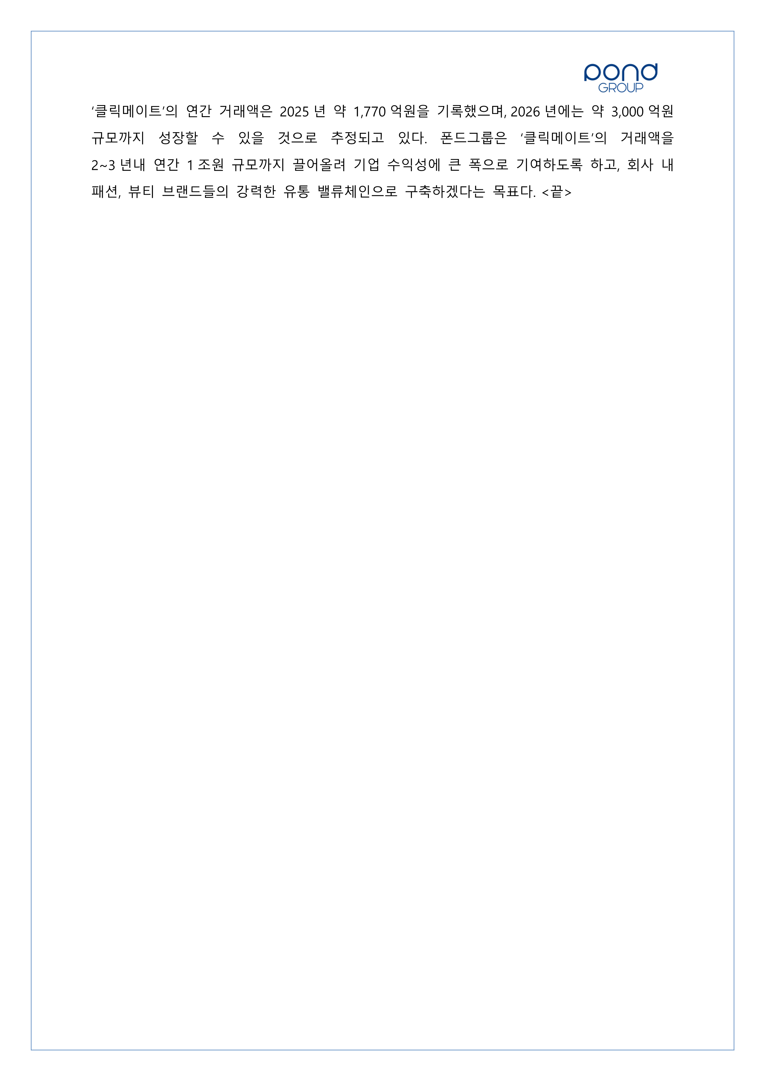 [폰드그룹] 2025년 매출액 4,858억원, 영업이익 576억원 달성… 역대 최대 실적 기록